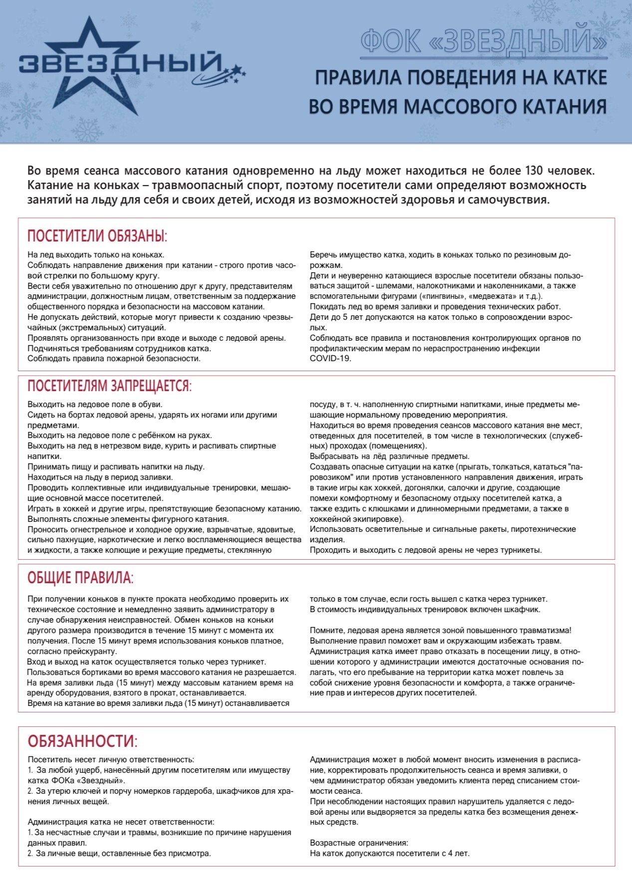 Просьба ознакомится с правилами поведения на катке❗