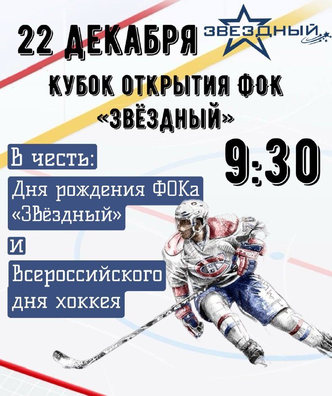 В честь этого события приглашаем вас на захватывающий матч «Кубок открытия ФОК Звёздный», который пройдет на нашем льду!