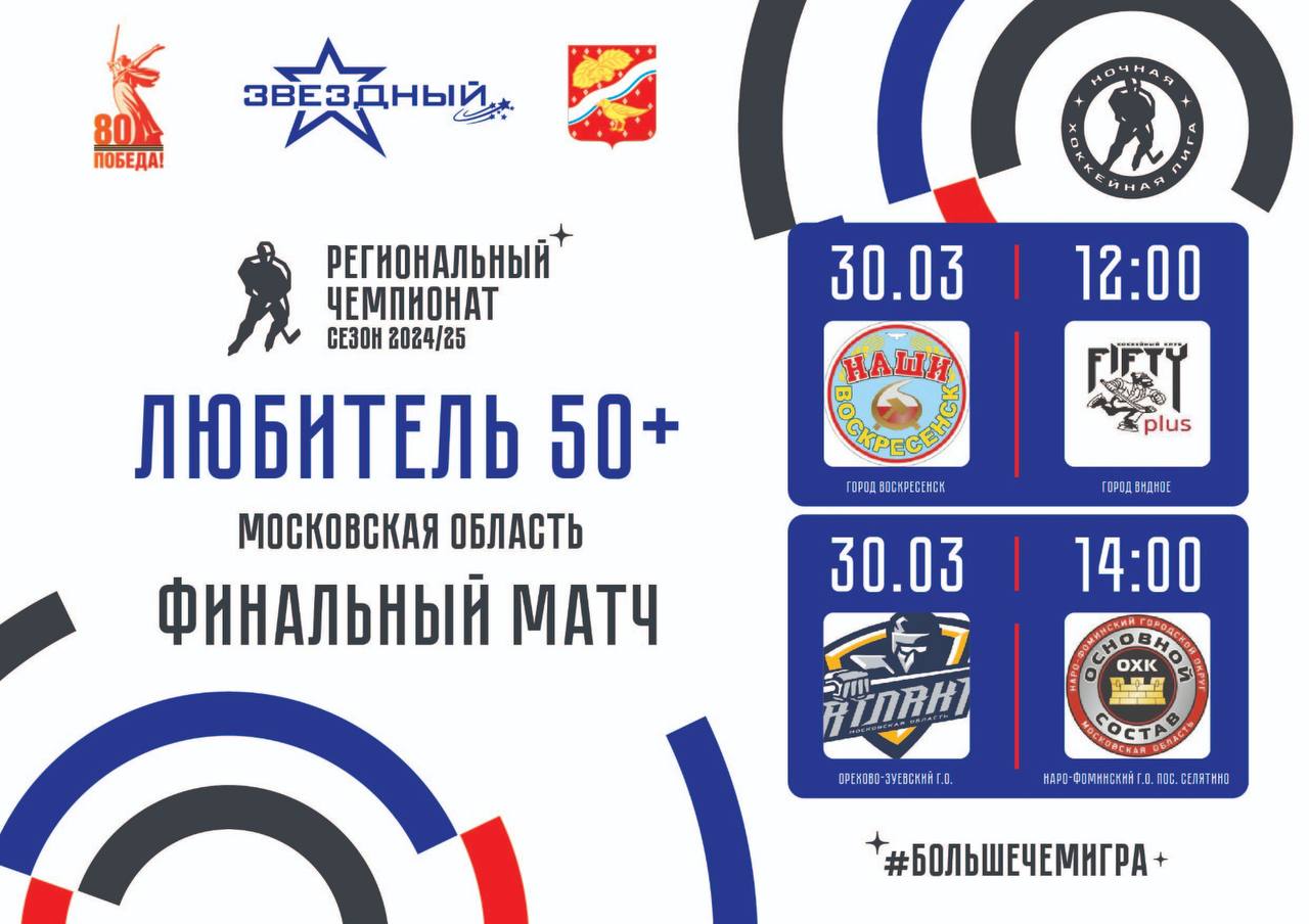 30 марта мы приглашаем вас на захватывающее событие — финал «Ночной Лиги: Любитель 50+»! Это будет не просто игра, а настоящая битва за титул чемпионов среди наших замечательных ветеранов хоккейного поля🏒